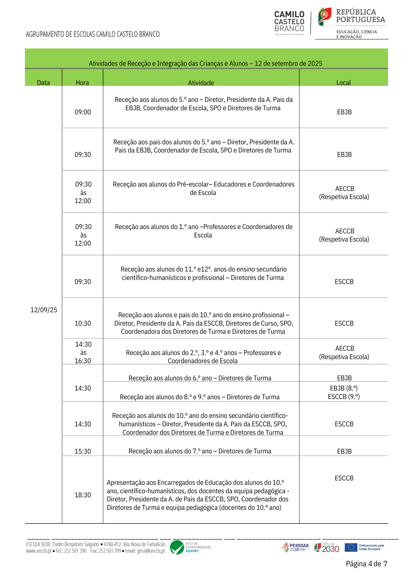 Ano Letivo 2025-26 – Agenda dia 12 setembro